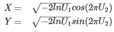 To find sample from normal distribution with mean µ and standard deviation δ N(µ, δ) we have to further convert X and Y simultaneously: X=X δ + µ