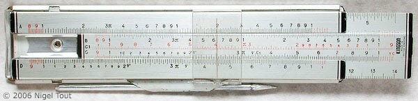 - Move the sliding middle section with scale "C" so that the 1 on the scale matches the 3 on the lower fixed section with scale "D".