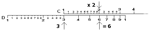 Figure-7: Calculating 3 x 2 on a Slide Rule