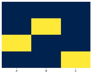 sns.heatmap(df.isnull(), yticklabels=False, cbar=False, cmap='cividis')