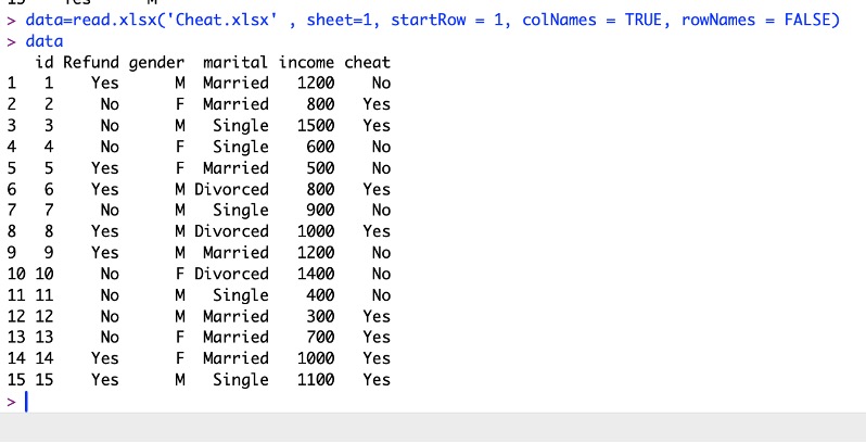 data= read.xlsx(‘Cheat.xlsx’ ,