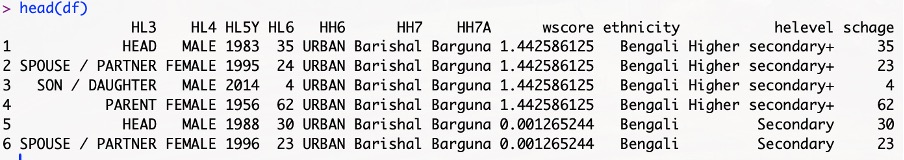 df <- df %>% rename(gender = HL4, relation=HL3, locality = HH6 )