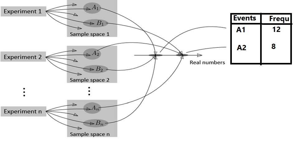 When we conduct an experiment several times then we can summerise all the outcomes of randome variable e.i. using frequency table.