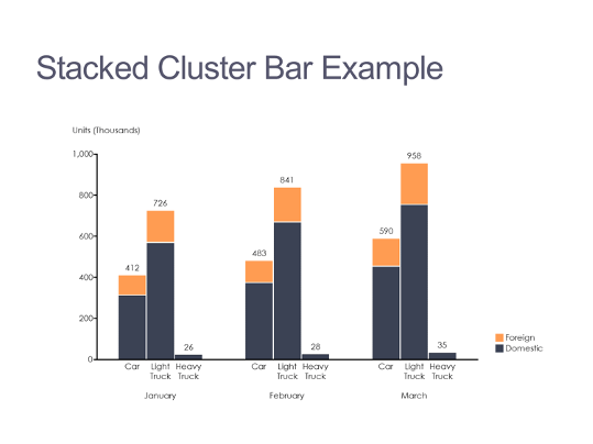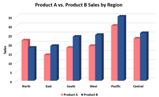 Clustered Column Chart: A clustered column chart compares values across categories using vertical bars placed side by side.
