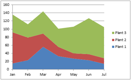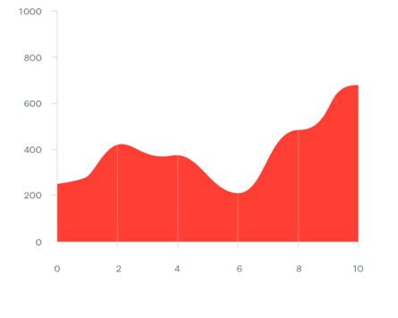 Area Charts: An area chart is similar to a line chart, but the area below the line is filled with color. It shows how values change over time and also shows the contribution of each part to the total. Area charts can display more information than pie charts or line charts alone (Stacked Area Chart). However, if too many data series are used, the chart can become confusing, so area charts should be used carefully.