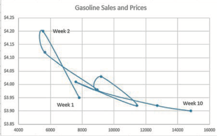 Orbit Charts: An orbit chart is a type of scatter chart where the points are connected in order, usually over time. It shows the path that the data follow. Orbit charts can reveal unusual patterns and trends that may not be easy to see in other charts.
