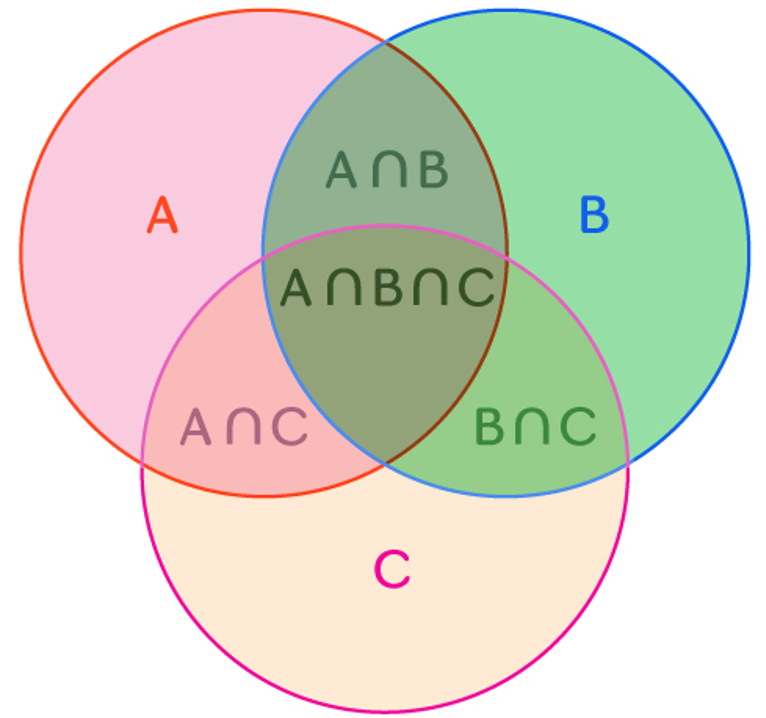 P(A∪B∪C) = P(A) + P(B) + P(C) − P(A∩B) − P(A∩C) − P(B∩C) + P(A∩B∩C)